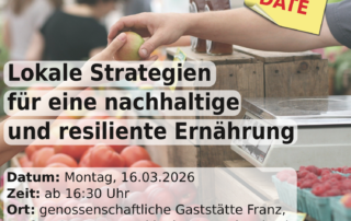 Am 16. März laden wir Sie zum REGIOtalk nach Tecklenburg ein. Erfahren Sie, welche Ziele sich die Stadt Tecklenburg mit ihrer Nachhaltigkeitsstrategie hinsichtlich der Ernährungsvorsorge gesetzt hat! Lernen Sie inspirierende regionale Best-Practice-Beispiele kennen und tauschen Sie sich aus. Gemeinsam mit Expert:innen, Vertreter:innen aus Verwaltung und Kommunalpolitik sowie regionalen Akteur:innen diskutieren wir über: Chancen und Herausforderungen der regionalen Lebensmittelversorgung, Innovative Ansätze für eine nachhaltige Ernährungsvorsorge, und konkrete Möglichkeiten zur Stärkung der regionalen Wertschöpfung. Bringen Sie Ihre Wünsche, Ideen und Ihr Wissen aktiv mit ein und gestalten Sie die Zukunft der regionalen Versorgung mit! Wir freuen uns auf Ihre Teilnahme und einen lebendigen Austausch! >>> Infos und Anmeldung [...]